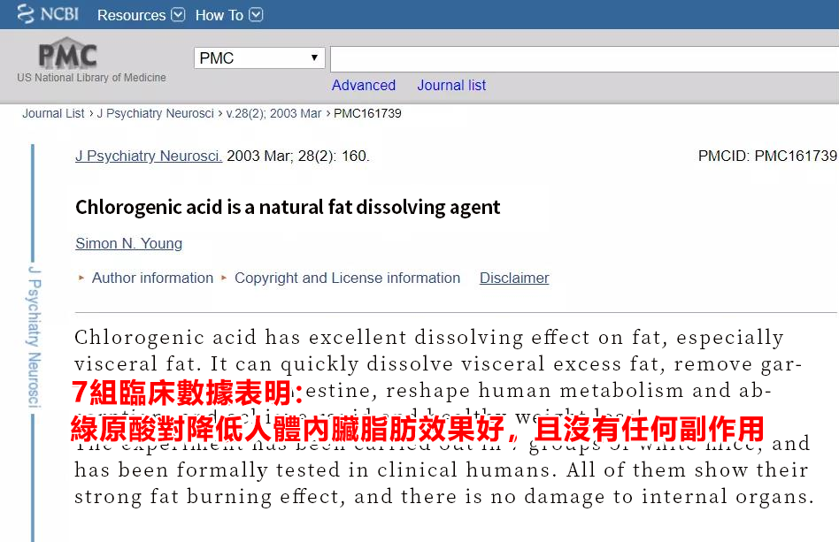 歐洲著名醫學雜誌上證實:通過7組臨床實驗,綠原酸可有效“溶解”內臟脂肪,且不傷害身體。