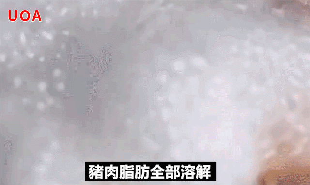 實驗二:在豬肉表面滴上綠原酸,1分鐘後,肥脂肪立馬被溶解,皮肉骨都完好無損!