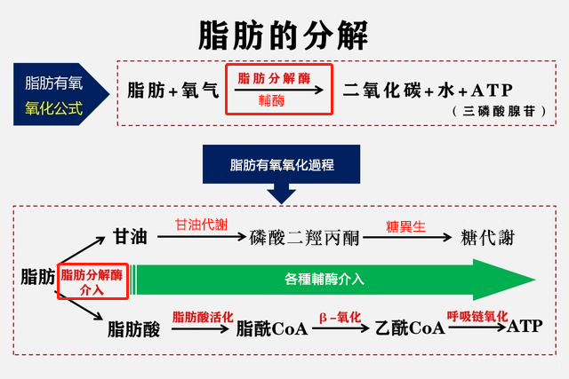 脂肪分解酶,是它將脂肪分解成二氧化碳和水,以及人體需要的能量;